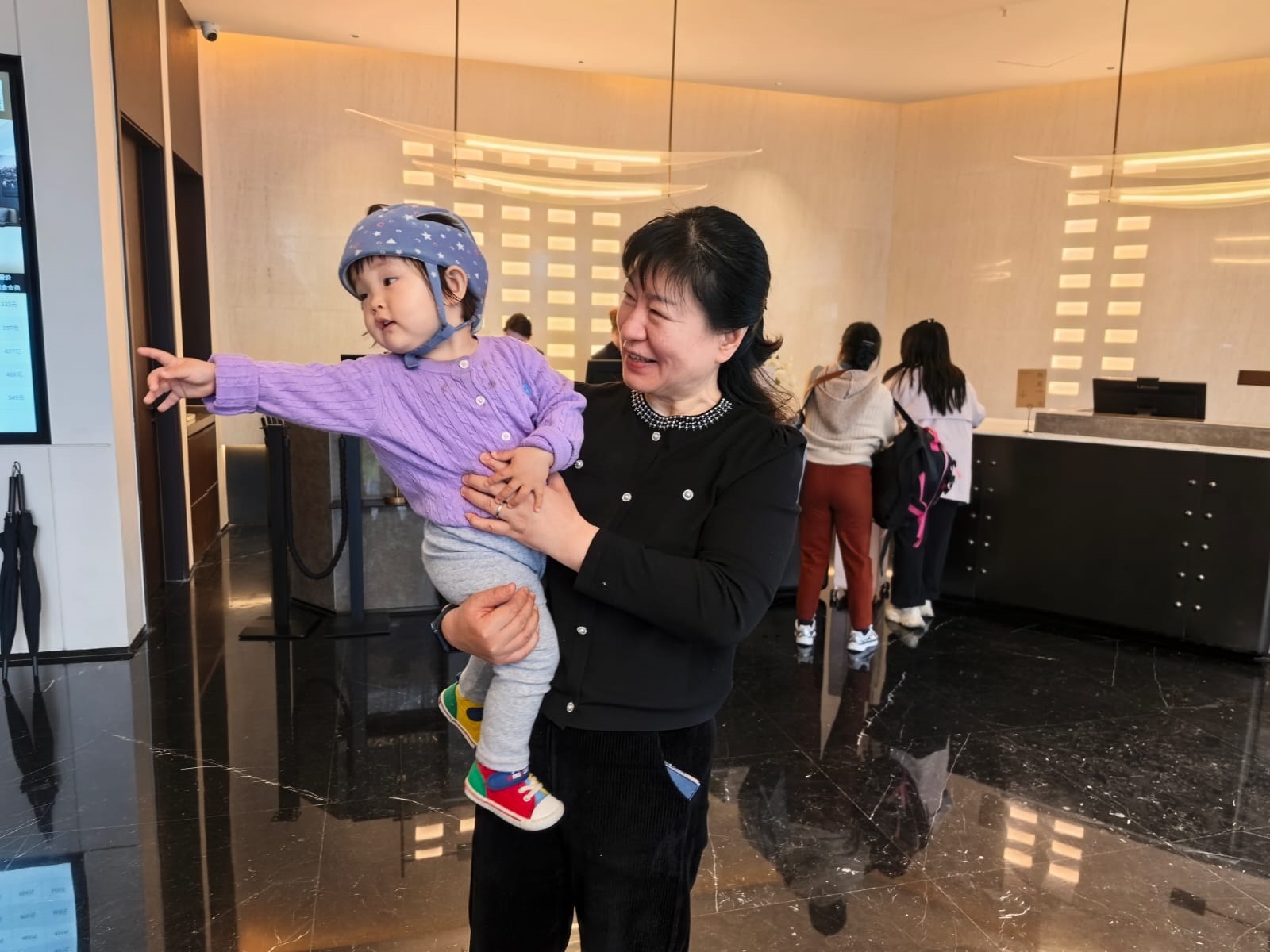 Kedatangan saya ke Huai An pekan lalu diketahui sang anak. Ia pun membawa istri dan anaknya ke Huai An. Sekalian agar ayah-ibunya bisa melihat cucu tunggal itu.